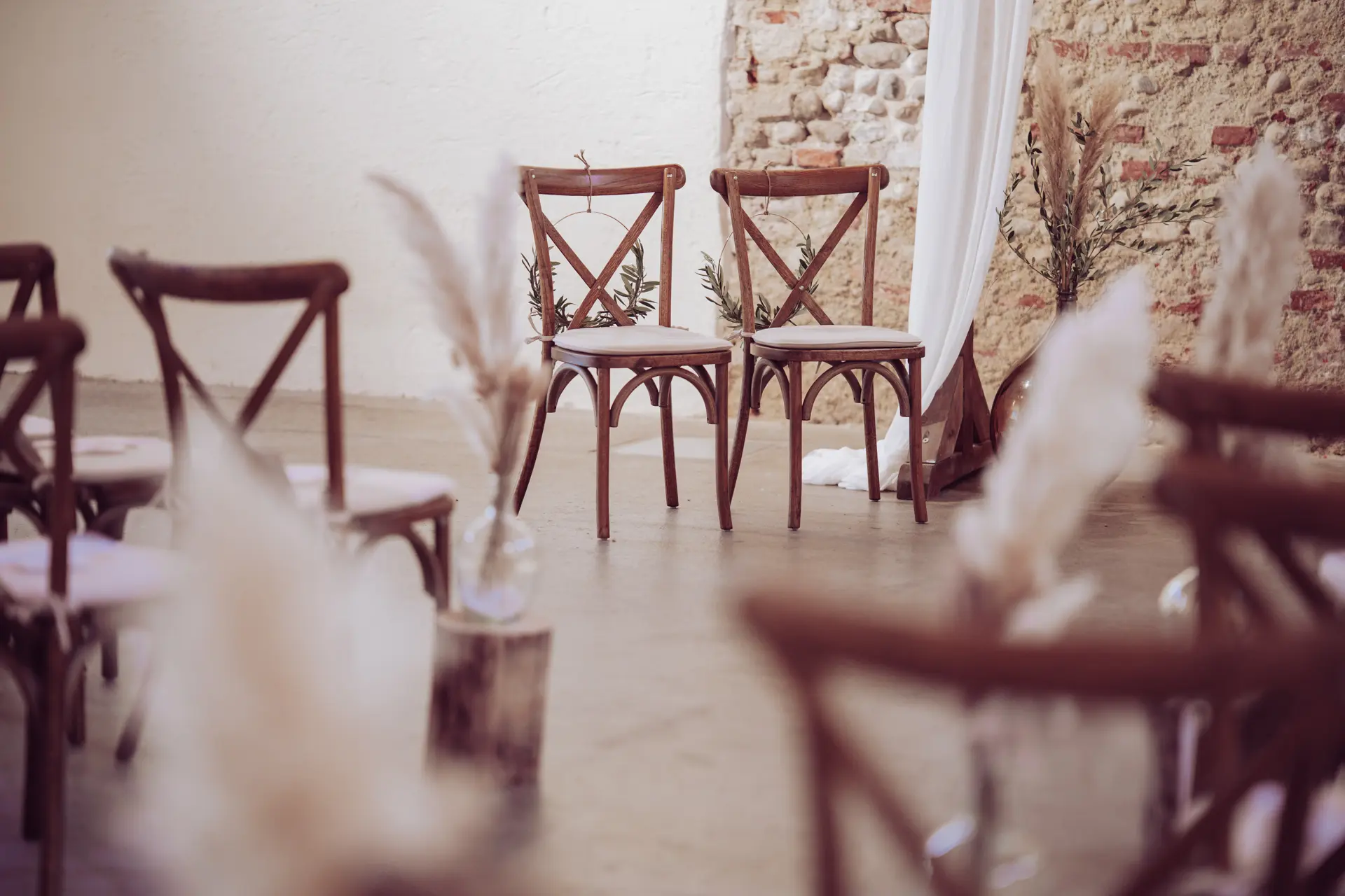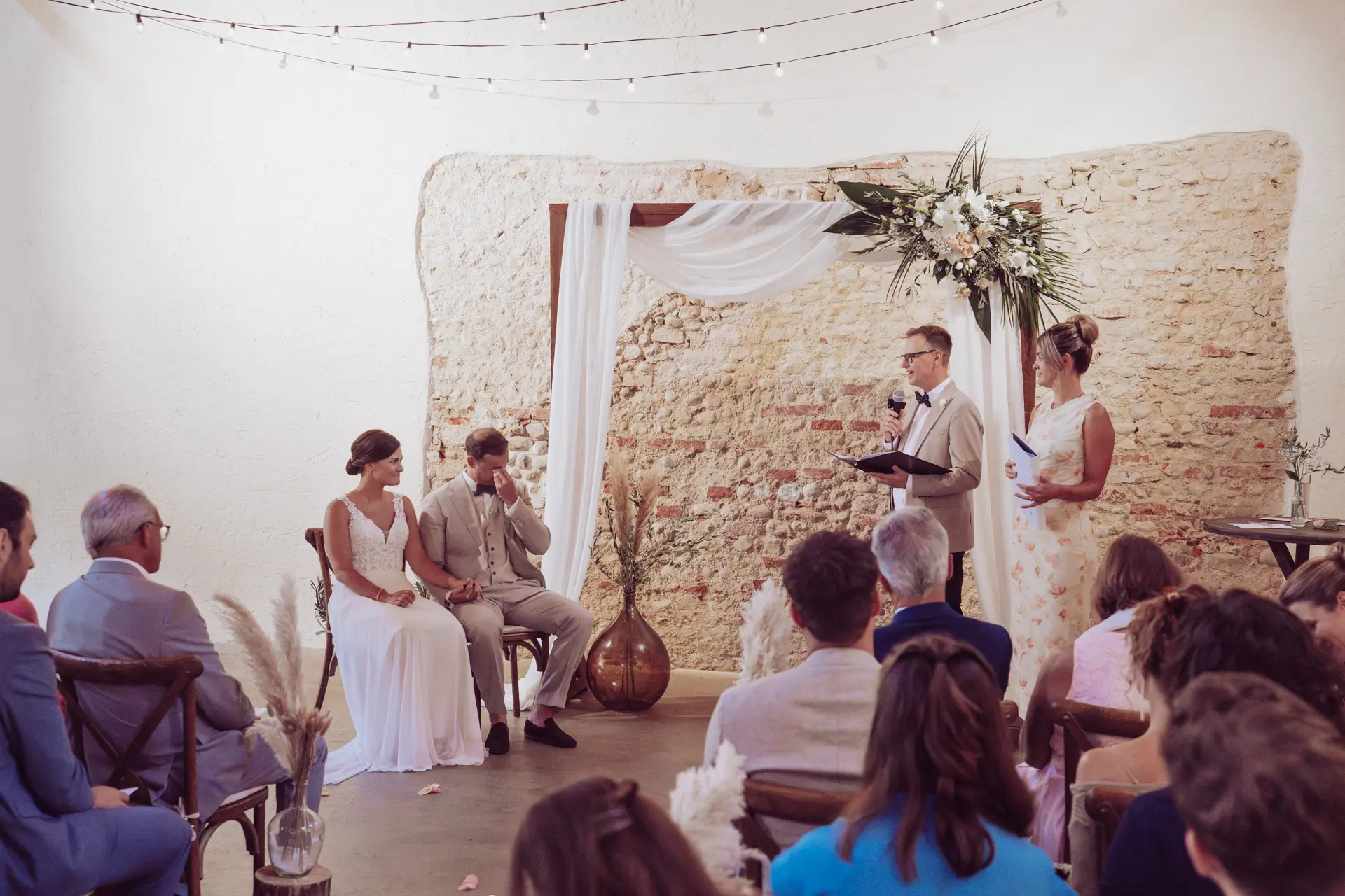 - Trauung: Freie Trauung in der Remise (geleitet von der Schwester der Braut).