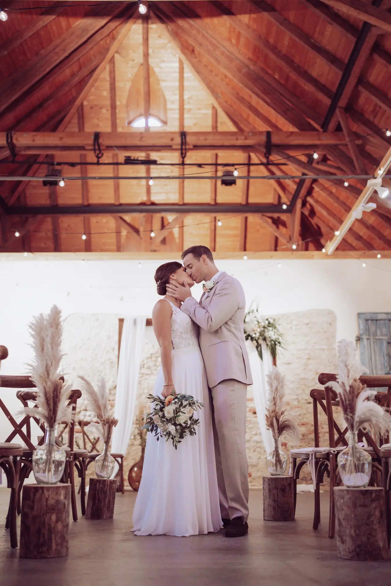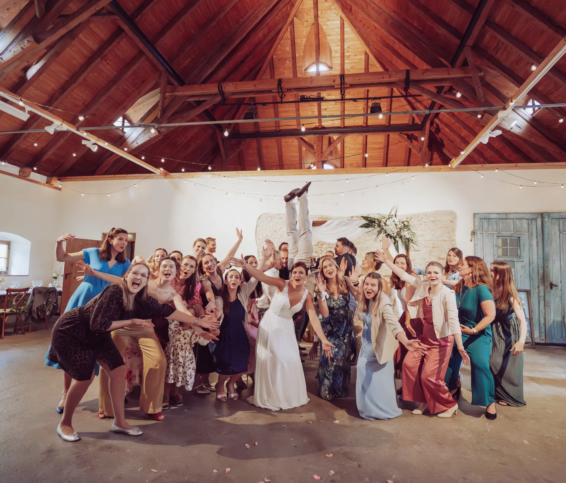 Ja, absolut. Wie die Hochzeit von Steffi und Michi zeigt, ist die Remise Schloß Fußberg in Gauting absolut regenfest. Die Räumlichkeit ist so gemütlich (besonders mit Lichterketten), dass auch bei schlechtem Wetter eine traumhafte Stimmung aufkommt. Das offene Gebälk ist wunderbar.