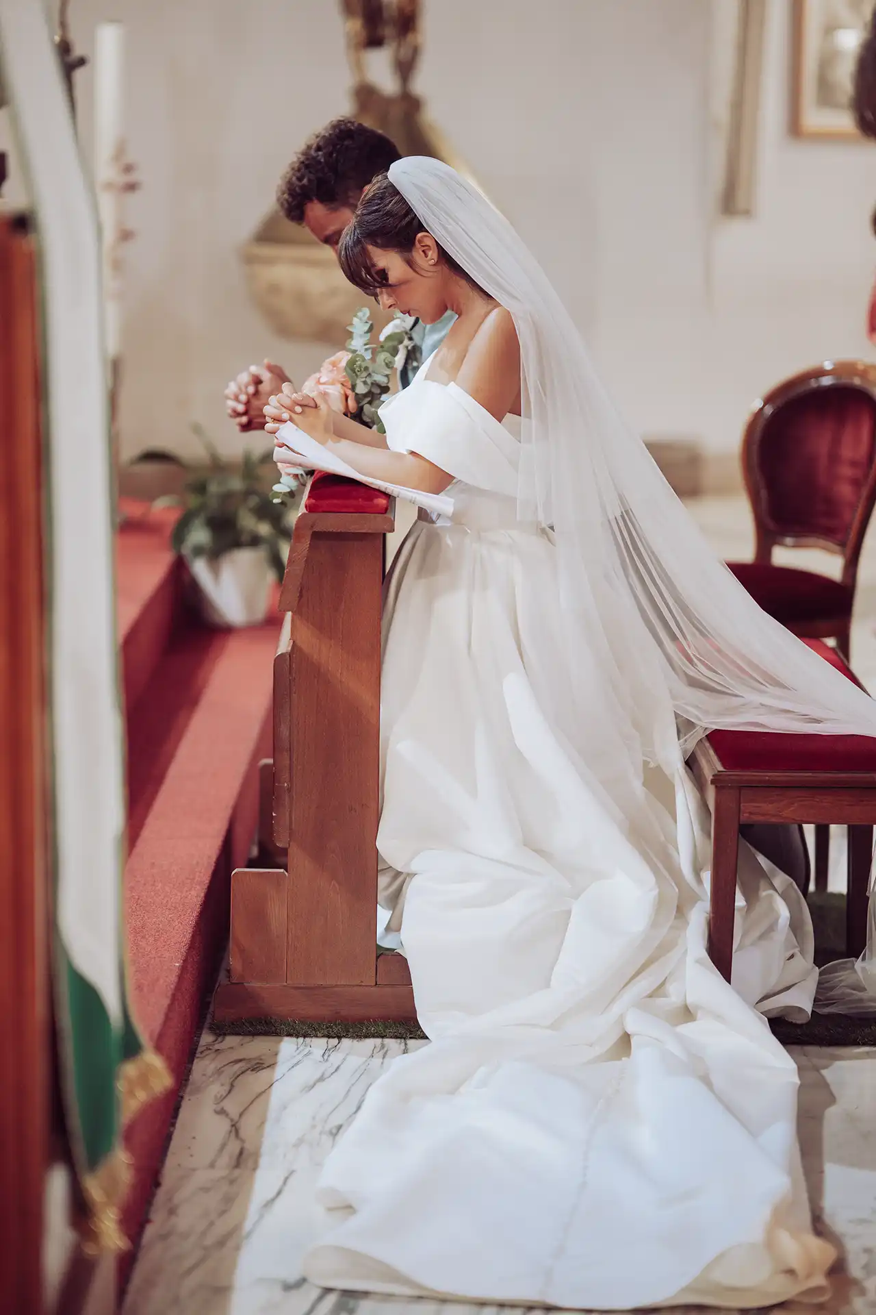 Gegen Mittag wurde es dann ernst. Martina fuhr mit ihrem Papa in einem wunderschönen Oldtimer-Cabrio vor der Kirche im Herzen von Giulianova vor. Ein Gänsehaut-Moment, als ihr traditionell von der Mama der Schleier aufgesetzt wurde.