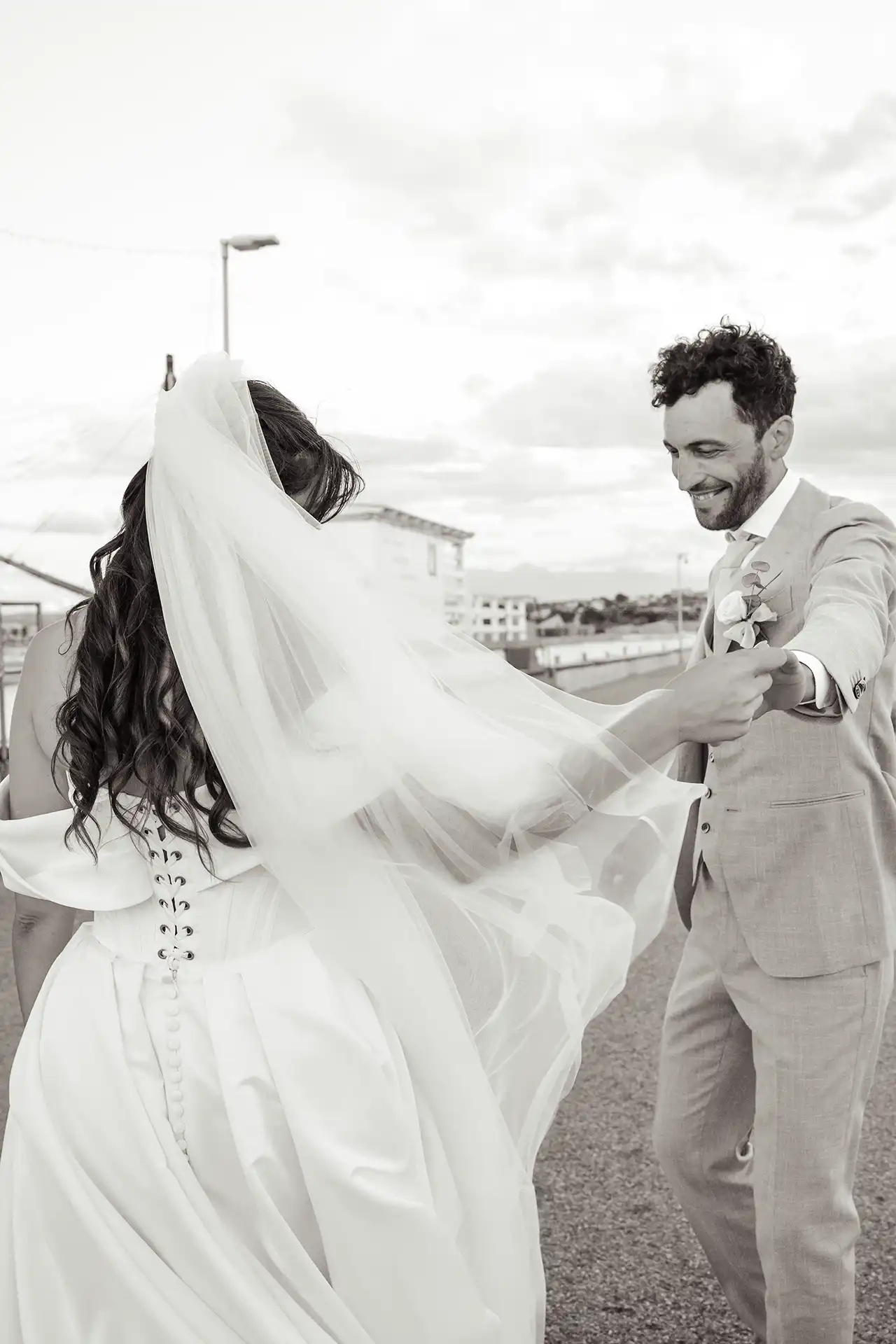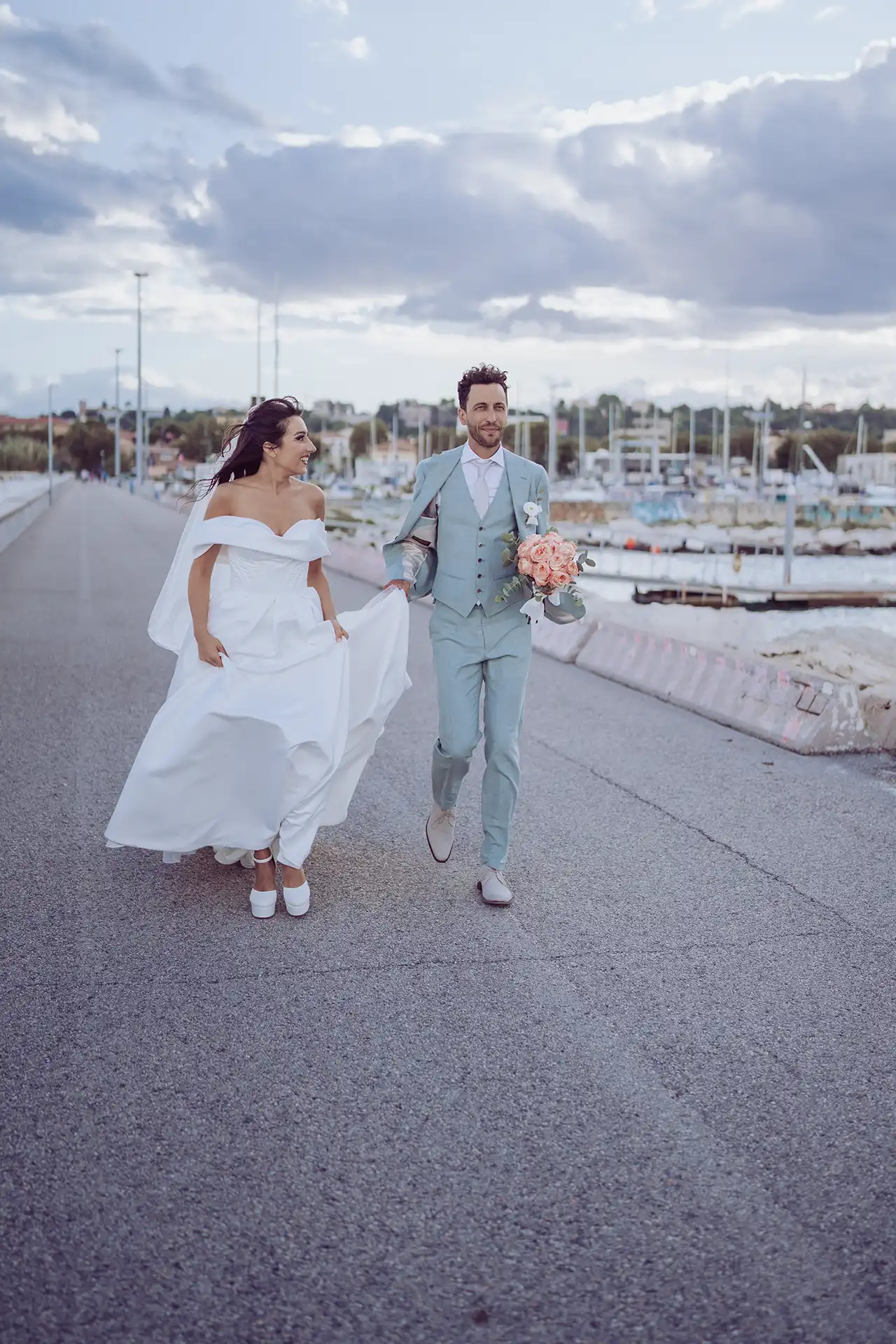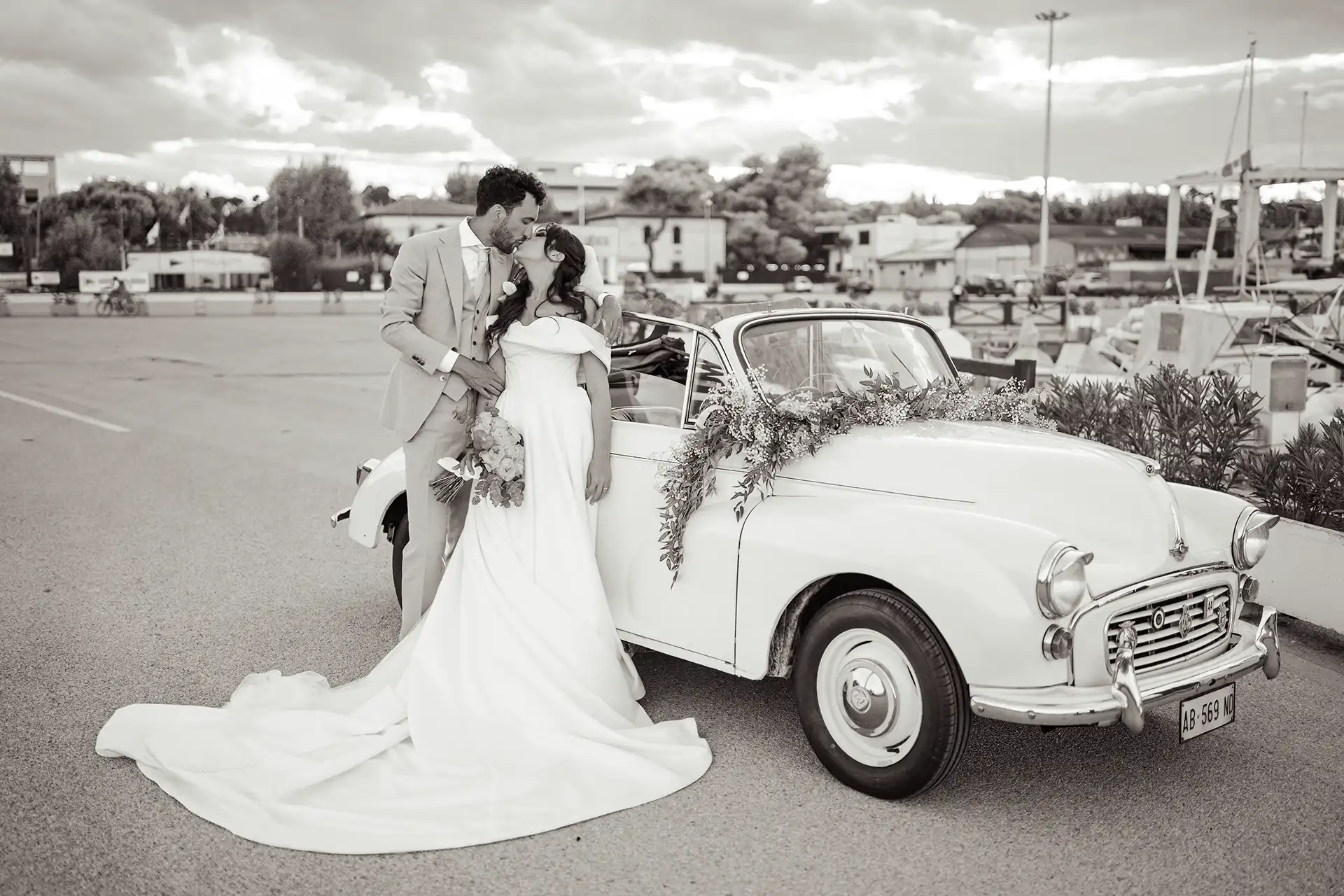 Ich hatte die Location am Vortag gescoutet (ein absolutes Muss bei Destination Weddings!) und wusste genau, wo das Licht an den Fischerhütten und am Steg perfekt steht. Martina und Nico waren so verliebt und locker drauf, dass die Bilder fast von selbst entstanden sind. Der Kontrast zwischen dem schicken Oldtimer, dem eleganten Paar und dem Hafen-Flair hat mir besonders gut gefallen.