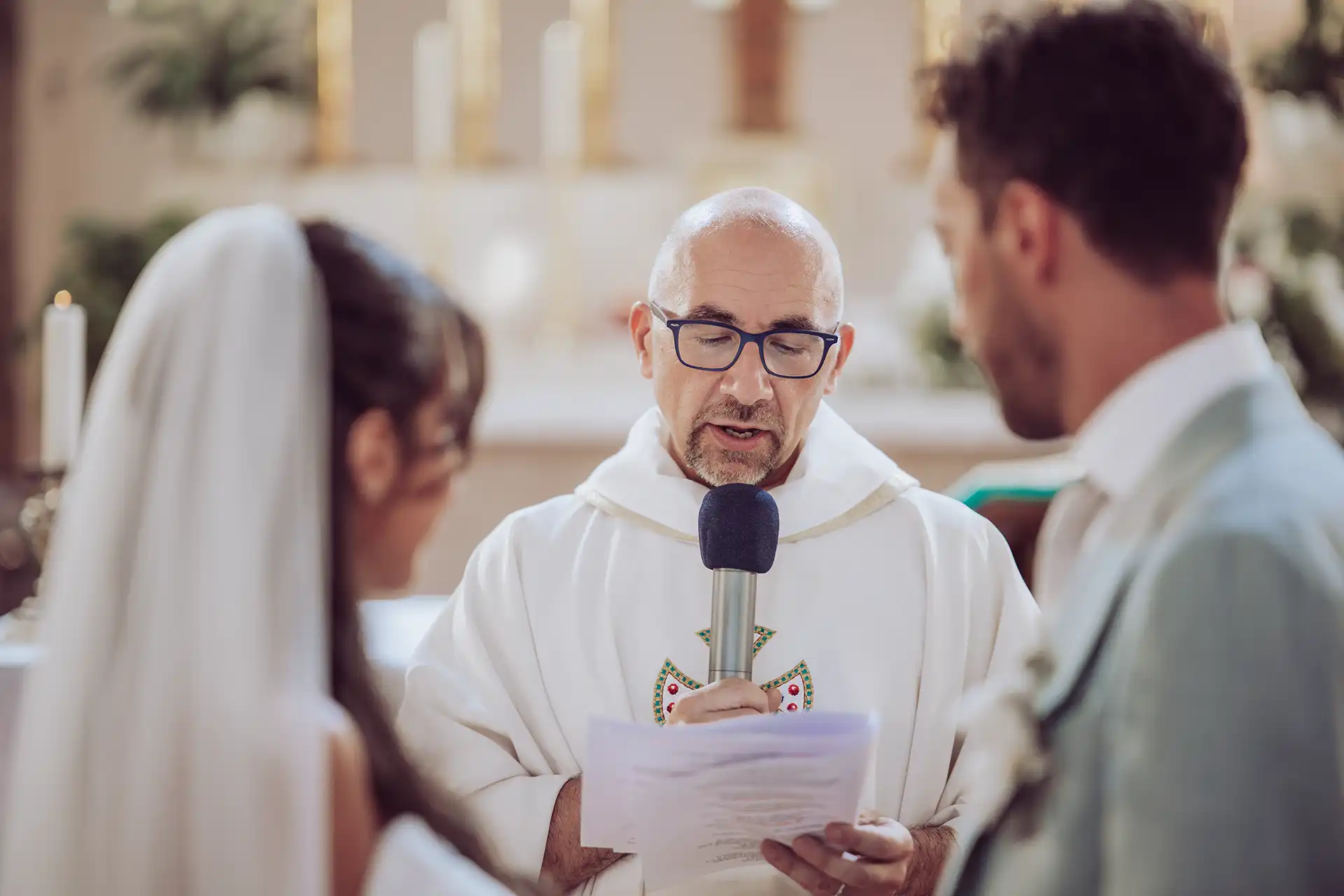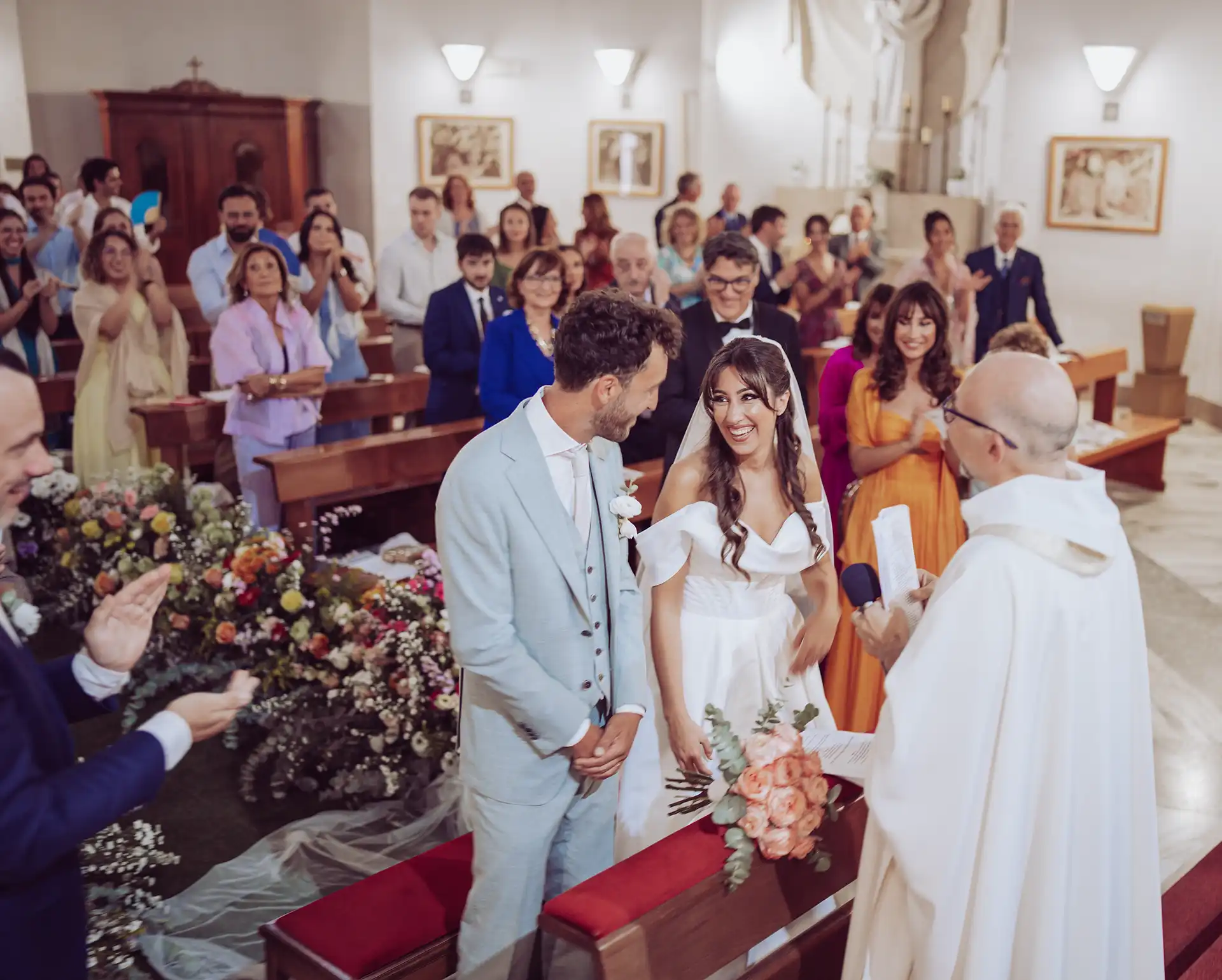 Rückblickend war das ein Geschenk: Da ich nicht vom Text "abgelenkt" war, waren meine Sinne geschärft für die kleinen Gesten, die feuchten Augen der Eltern und das nervöse Händedrücken des Brautpaares. Die Zeremonie war förmlich, aber doch unglaublich herzlich und dank der Fächer konnten die Gäste auch der italienischen Mittagshitze trotzen.